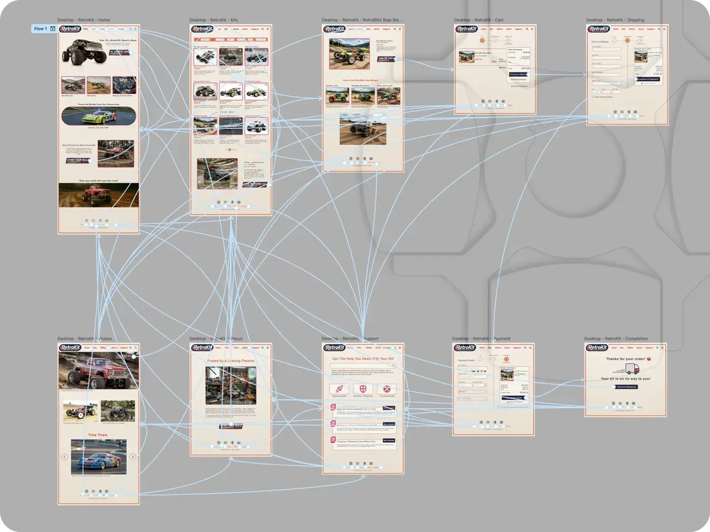 RetroKits is a conceptual ecommerce platform designed to streamline the buying and selling of hobby-grade kits. The site includes key retail features like category filtering, product detail pages, cart checkout, and order confirmation. I focused on creating a clean, intuitive user experience with strong visual hierarchy and responsive design optimized for both desktop and mobile.
